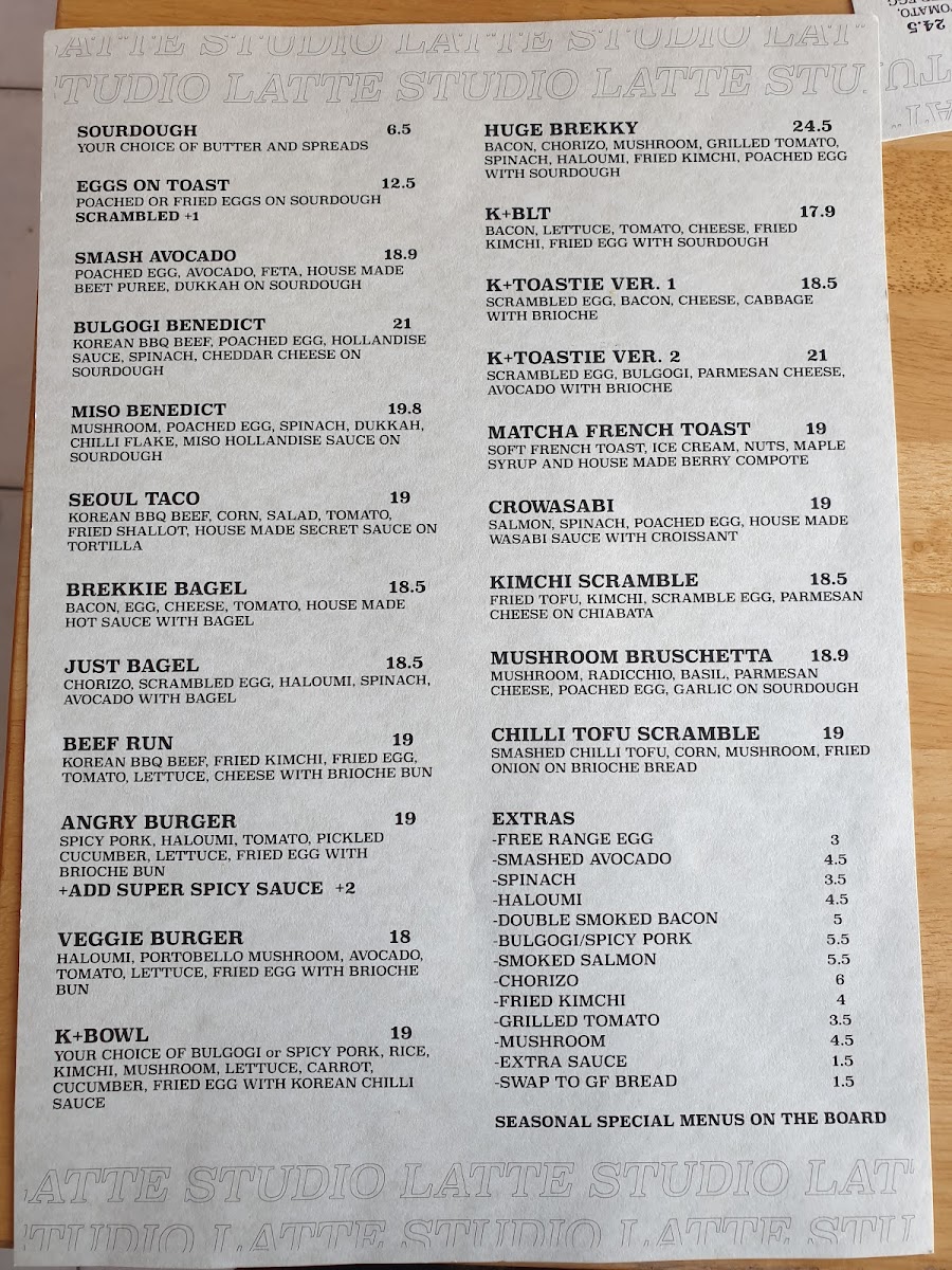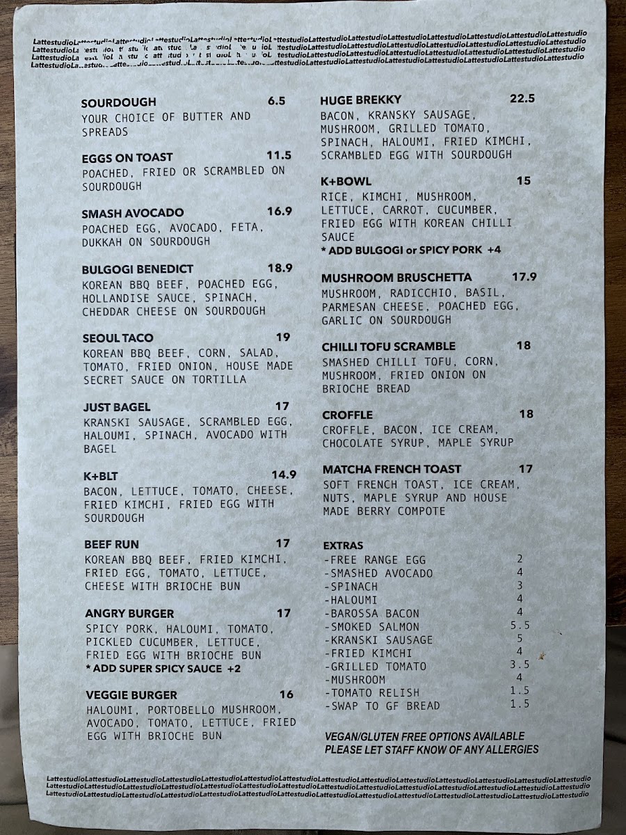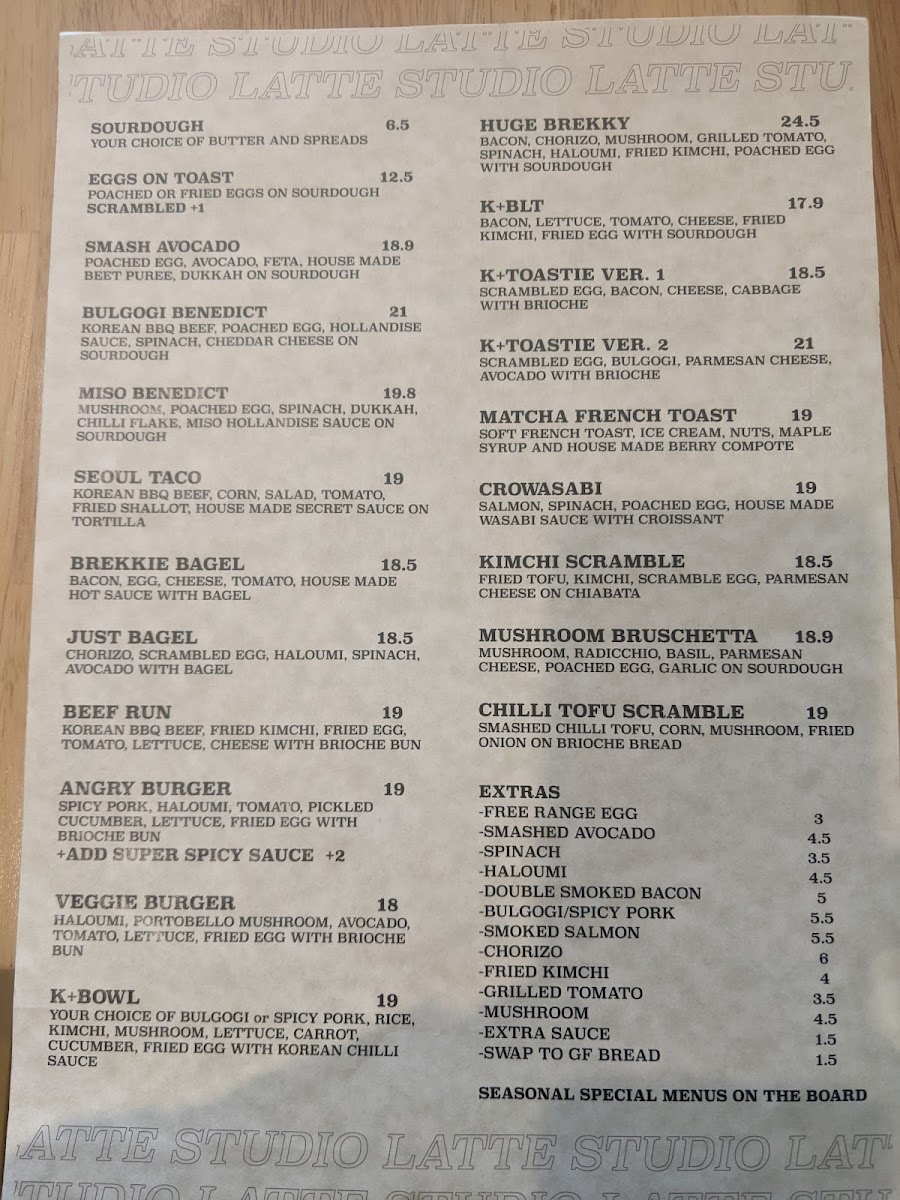 Latte Studio, nestled on Henley Beach Road in Torrensville, offers a vibrant blend of Korean-inspired brunch and café delights. This spot shines with its inventive toasties like the Bulgogi Avo Toast loaded with tender bulgogi, creamy avocado, cheese, and a spicy sriracha kick, alongside hearty mains such as Kimchi Fried Rice and the elegant Miso Benedict featuring miso hollandaise sauce. The menu balances bold Korean flavors with classic café comfort, all served on quality sourdough or ciabatta. Their cold beverages impress—from the refreshing Iced Matcha and Matcha Cloud to the indulgent Butterscotch Latte, perfect for cooling down or sweetening your day.